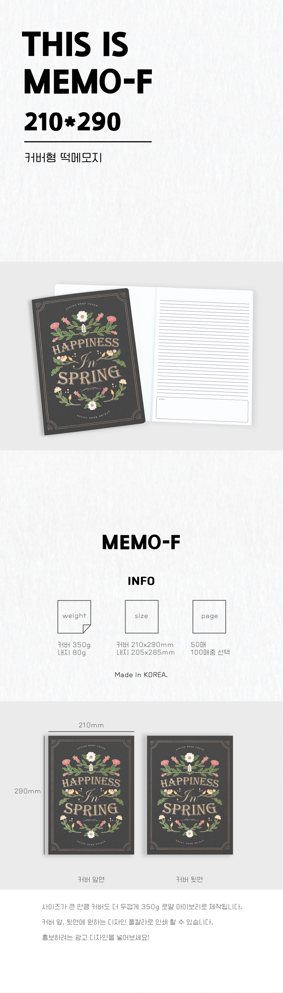 Ç¥Áö 210*297, ³»Áö 205*285mm |