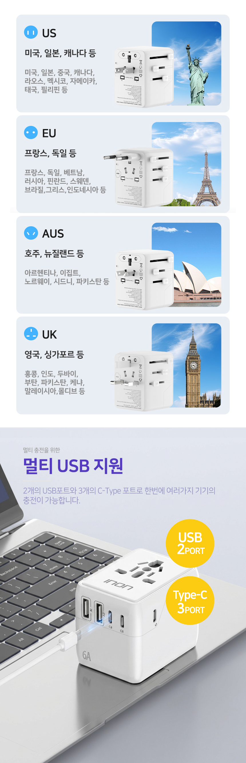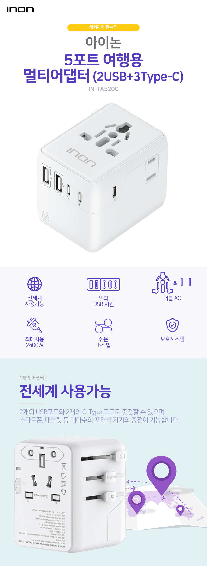 USB 5Æ÷Æ® ÇØ¿Ü ¿©Çà¿ë¾î´ðÅÍ 2USB + 3Type-C